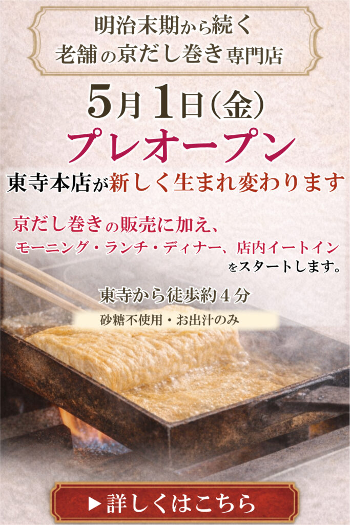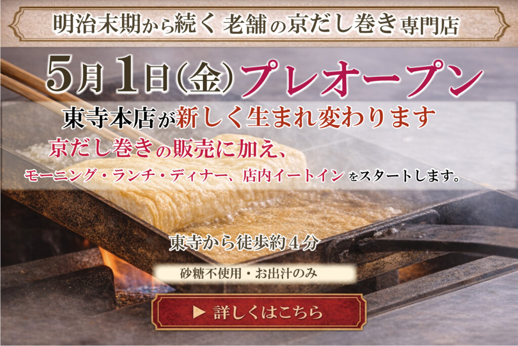 また、毎月21日に東寺にて行われております「弘法さん」の日には、東寺本店の店頭にて実演販売を行っております。