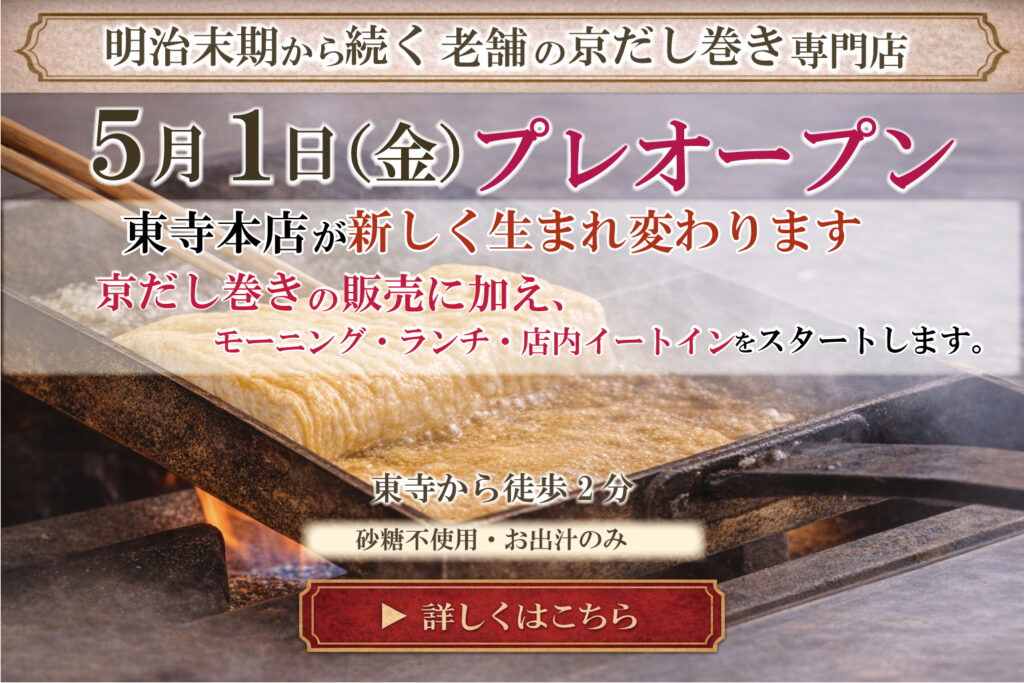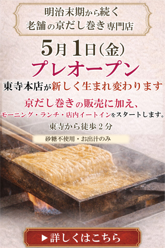 京都でだし巻きなら|京だし巻きおかもと東寺本店 プレオープン(2026年5月1日)