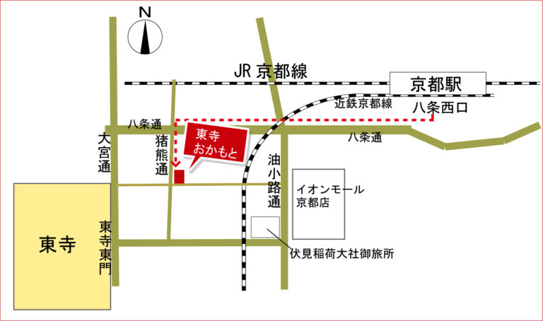 東寺本店は、世界遺産・東寺 東門から徒歩約4分。